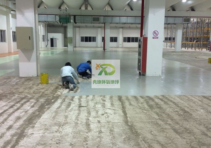 1、在潔凈的地面上,將環(huán)氧樹(shù)脂和石英粉按正確的配比攪拌均勻后,采用批刀均勻鏝刮在地面上,以增加中涂與面層之間的結(jié)合,并進(jìn)一步調(diào)整地面的平整度;